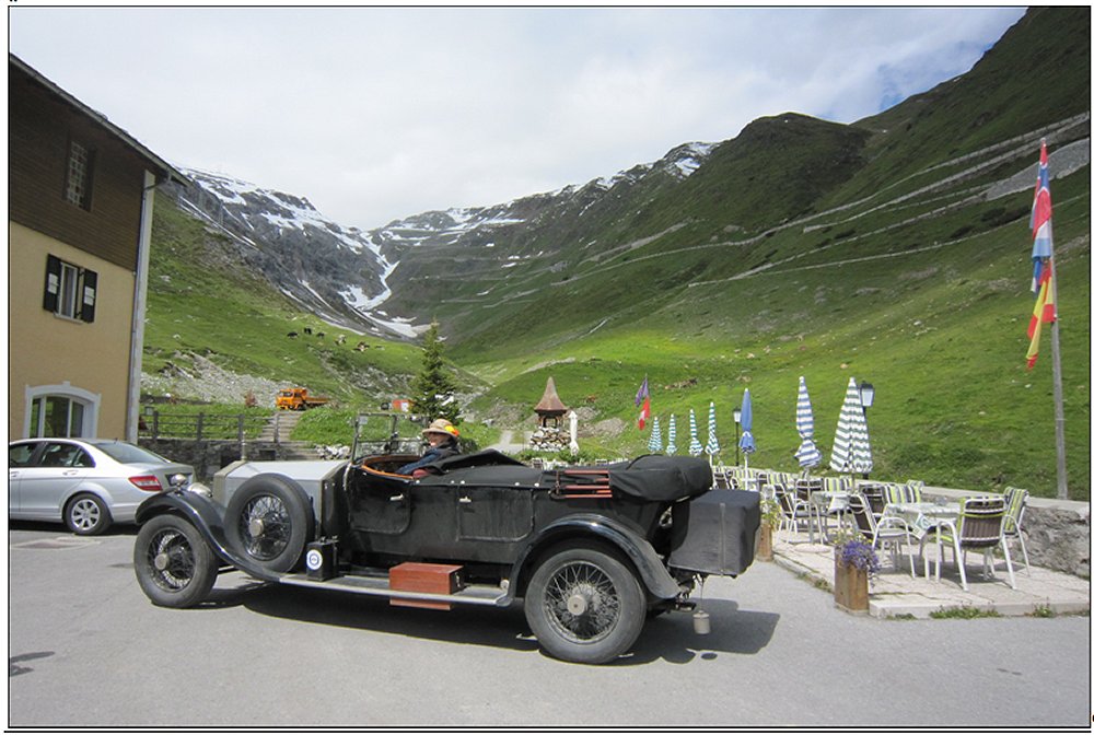 The photo of the Gaines-Cooper Silver Ghost (60922) on the Stelvio last year was very different from the day we climbed it. Apart from being incredibly hot, it was the busiest day ever on the pass and it had to be closed for two hours when we were at it’s top. There was an international motor cycle group and I have never seen so many thousands of motor bikes. Napoleon built it to get his gun carriages over the Alps, and as they pivoted on one axle, the 50 hairpins are very sharp.
