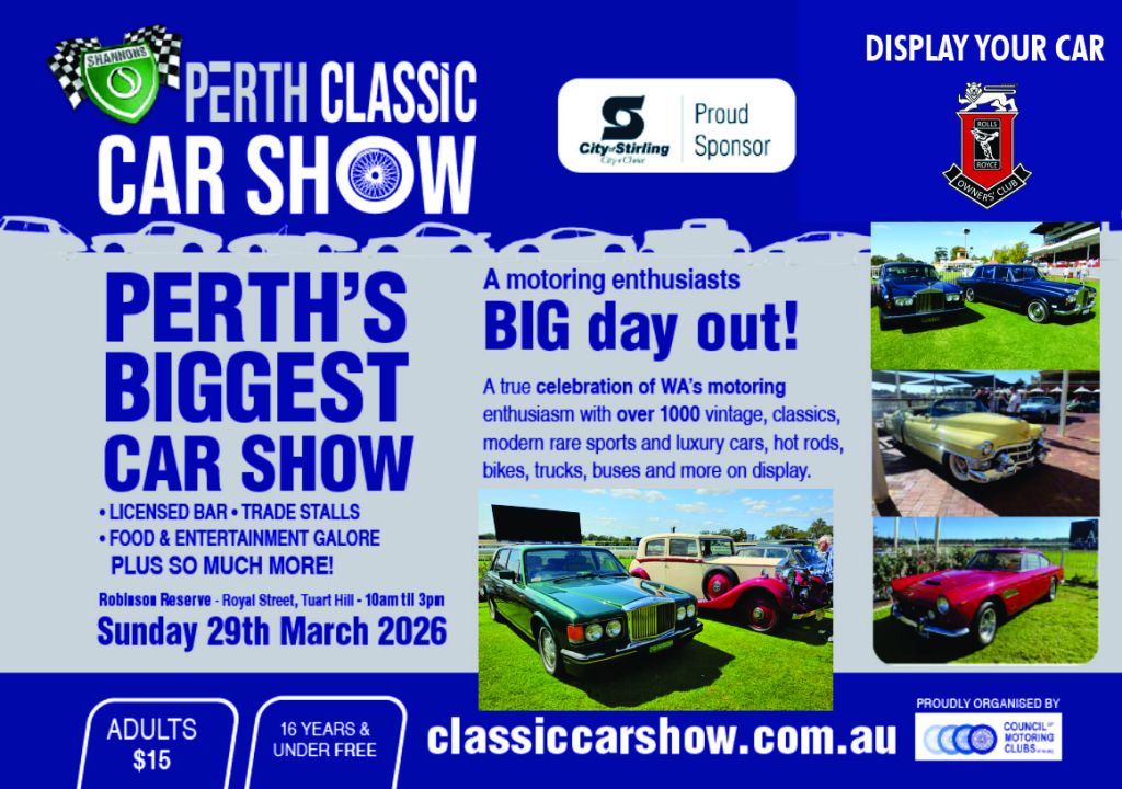 March 29 – RROCWA display at Classic Car Show, Robertson Reserve, Tuart Hill – POSTPONED – see below